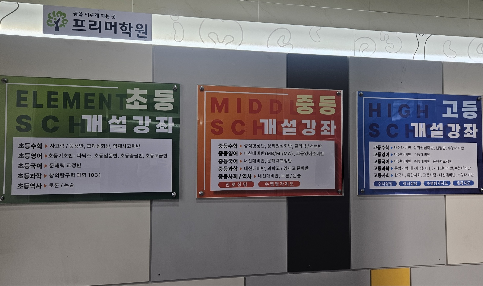안녕하세요! 꿈을 이루게 하는 곳 초중고 단과전문 프리머학원입니다. 국영수사과 내신수능/문해력교정/창의사고력수학/창의탐구력과학/초등한국사세계사토론논술/특목영재고대비/진로상담/수시상담/정시상담/수행평가지도/세특지도/어울림정회원학원