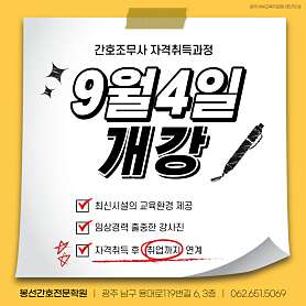 간호조무사자격증 취득반 수시 접수가능합니다. 언제든 문의 주시면 친절히 안내 해 드리겠습니다.