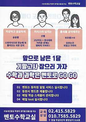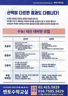 소수정예 집중관리 내신대비 수능대비 초등 중등 고등 수학전문 과학전문 학원입니다.