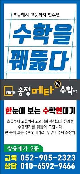 안녕하세요? 더 꼼꼼하게!더 탄탄하게! 더 깊이있게! 송정메타 수학학원입니다. 다가오는 9월27일 수학쓰기 경시대회를 개최합니다. 단순히 정답을 맞히는 것이 아니라, 풀이 과정을