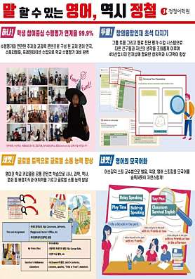 권선정철어학원 _특.장점 고객이 주신 변함없는 사랑, 학습 성공률 100%“로 보답하겠습니다. 정철 임직원의 하나된 목표는 “학습 성공률 100%달성을 통해 고객님의 믿음과 사랑에 보답하는 것”입니다. 1987년 정철영어연구회로 시작한 정철이 전국 300여개의 정철어학원주니어와 정철어학원,정철Cyber,정철 Amazing폰, 정철영어TV등에 이르는 14개의 언어교육 전문 분야를 갖춘 브랜드 기업으로 정장할 수 있었던 것은 정철의 기업핵심목표 (제 1조항 “정철은 학습자 개개인의 학습 성공률100%를 달성한다.”)를 변함없이 지켜왔기 때문입니다. 권선정철어학원 _강사교육 시스템 최고의 강사가 최고의 학생을 길러낸다는 불변의 신념! 정철어학원 강사는 효과적인 교수법을 매일 연구합니다. 정철은 교욱연구소의 강사교육 시스템을 통해 검증받은 강사만이 아이들을 지도할 수 있도록 철저하게 관리지도 하고 있습니다. 매년 강도 높은 강사교육(T.Q.C,TTC,Workshop)을 통해 선생님들의 학습지도력을 향상시키고 정철TESOL,MBA교육 들을 통해 정철 교수법과 효과적인 강의 방법을 연구 발전시켜 나가고 있습니다. 정철어학원 _교육시스템 아이들의 진정한 영어성공 100%를 위한학습관리! 1:1맞춤Consulting,LMS학사관리 System에 맡겨 주십시오. 격변하는 영어 교육정책! 체계적인 교육시스템과 실용영어 중심의 탄탄한 커리큘럼이 갖춰진 학원에서 준비해야 합니다. 정철어학원jr은 오랜 기간 축적된 영어교육 노하우와 연구소 전문연구원들에 의해 개발된 프로그램 및 커리큘럼,학생의 입학컨설팅부터 수업, 온.오프라인 상의 철저한 학사관리(Learning Management System)까지! 차별화된 교육시스템으로 자녀의 머릿 속에 진짜 영어의 체계를 완성시켜 드립니다. 중학내신Perfect Master -문법, 독해, 쓰기, 말하기가 유기적으로 구성된 중학 내신 대비 필수 과정 -외고,국제고대비반 소수인원운영 토플시험대비반 [출처] 권선정철어학원|작성자 신나는 영어