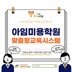 [고용노동부 국비지원 3년인증 기관] 80%출석 시, 기초재료 무상지원 90%출석 시, 종강 이후 (1개월이내) 재시험대비 무상지원 <국비지원 실기속성반 평일/주말> *미용사(헤어)국가자격(실기) (월~금)오전09:30~13:30 (월~금)오후13:00~18:30 (월~목)저녁19:00~22:00 (일요일) 7시간(10:00~18:00) ※ 자비부담 0원~최대 362,320원 *미용사(네일)국가자격(실기) (월~금)오후14:30~18:30 (토요일) 7시간(10:00~18:00) ※ 자비부담 0원~최대 407,610원 *미용사(피부)국가자격(실기) (월~금)오전09:30~13:30 (월~목)저녁19:00~22:00 (토요일) 7시간(10:00~18:00) (일요일) 7시간(10:00~18:00) ※ 자부담 0원~최대 362,320원 아임미용학원 아름다울 아, 생각할 임 아름다운 생각을 잇다. 줄리의 법칙처럼, 간절히 바라는 일은 예상치 못한 과정을 통해서라도 필연적으로 이루어집니다! 산업현장 노하우를 정리하여 출판사에 정식으로 교재를 집필하며 항상 연구하고 노력하고 있습니다.