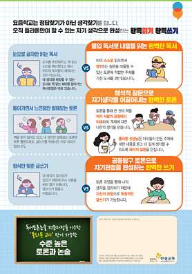 설명 주니어플라톤은 자신의 생각을 발견하고 글로 써보는 토론식 독서논술 프로그램입니다. 1. 다양한 영역의 도서를 정확하게 읽고 이해하며 자기지식을 쌓습니다. 2. 전문 교육을 받은 독서토론논술 전문교사가 수업을 진행합니다. 3. 독서토론 전문교사의 '플라톤식 질문법'은 아이들이 다양하고 창의적인 사고를 이끌어 냅니다. 4. 발표력/미디어/논술수업 등 학년 별 특화 수업으로 교과 연계 주제 학습을 대비합니다. 대상 : 7세 ~ 중등 과목 : 주니어플라톤(독서토론논술) / 역사하기 / 주니어국어/ 수행백과 /중등M플라톤