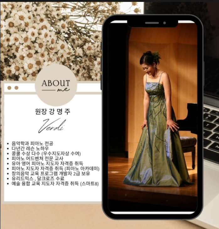 내 아이의 첫 피아노 선생님, 믿음과 책임으로 지도합니다. 아이의 첫 건반 위 작은 울림, 평생 음악의 빛이 됩니다. 베르디 음악학원에서 함께하세요. 세계 무대에서 다져온 전문성과 경험, 내 아이의 첫 피아노 교육을 책임집니다