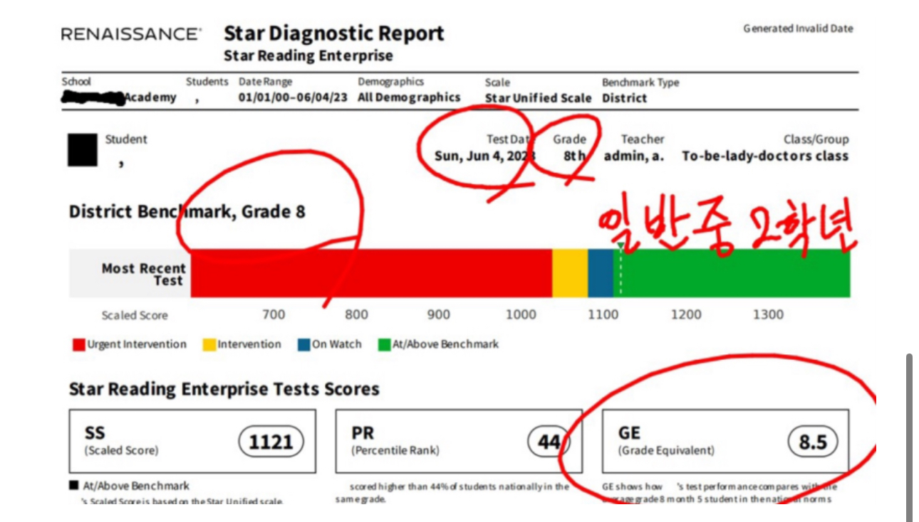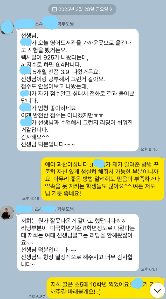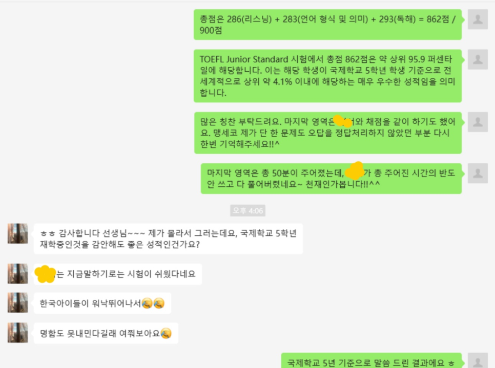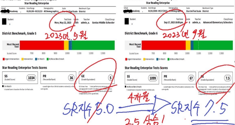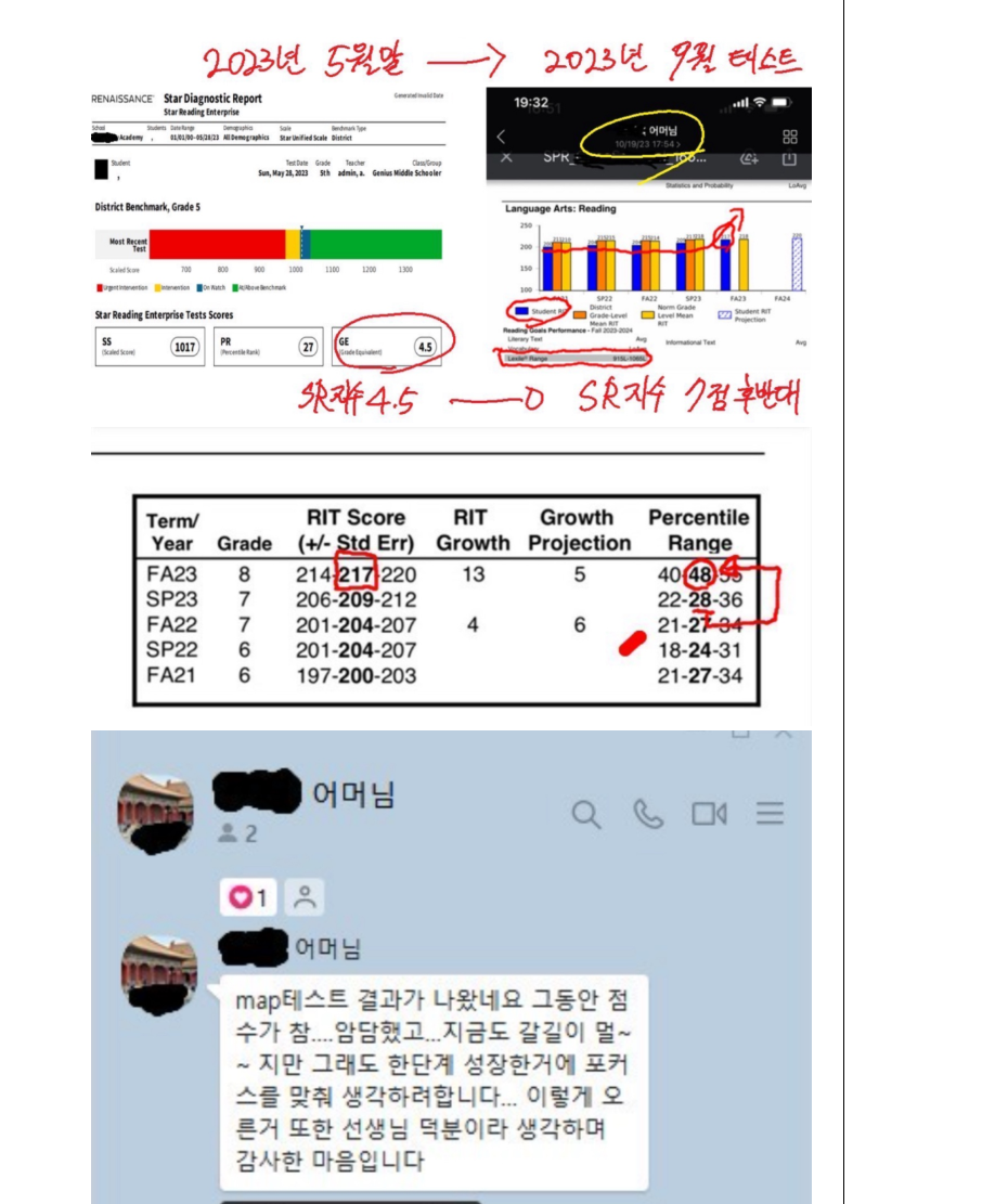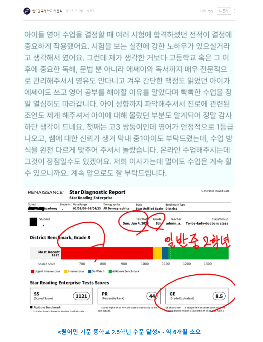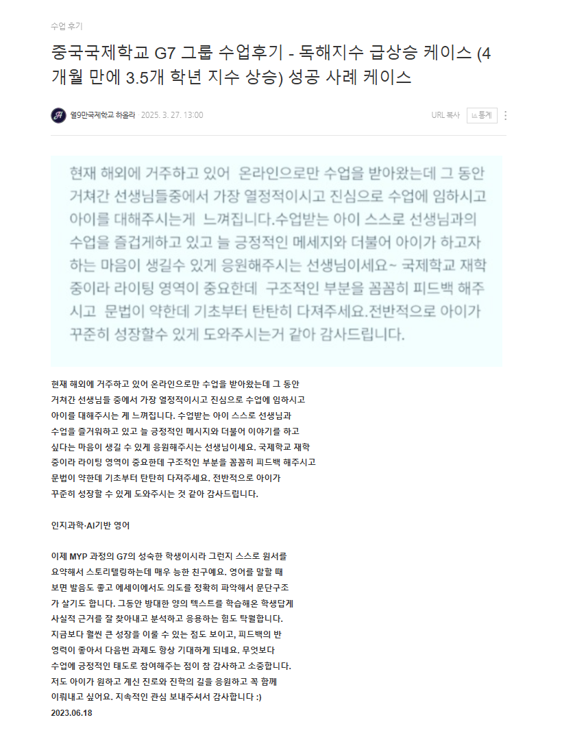 중국국제학교 G7 그룹 수업후기 - 독해지수 급상승 케이스 (4개월 만에 3.5개 학년 지수 상승) 성공 사례 케이스