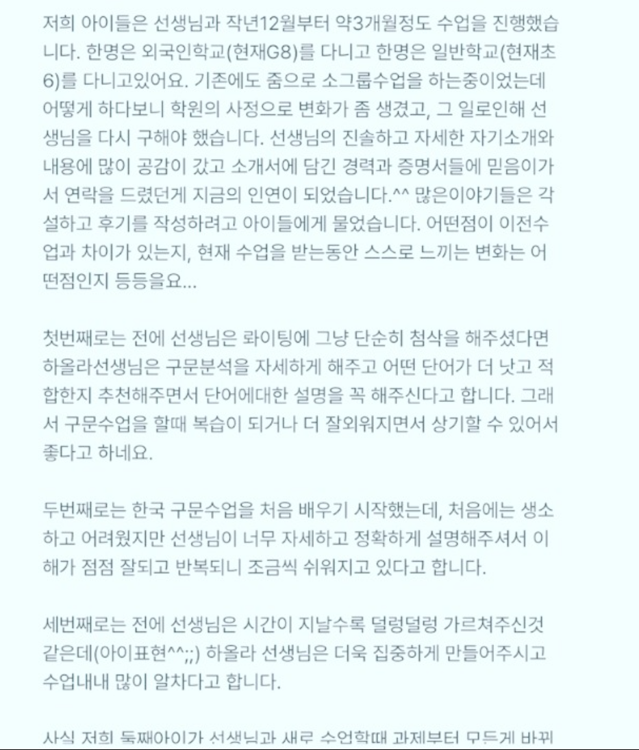 하올라 - 어학원 불만족 학생 학부모님 그룹 영어 수업 후기 성공 사례 케이스