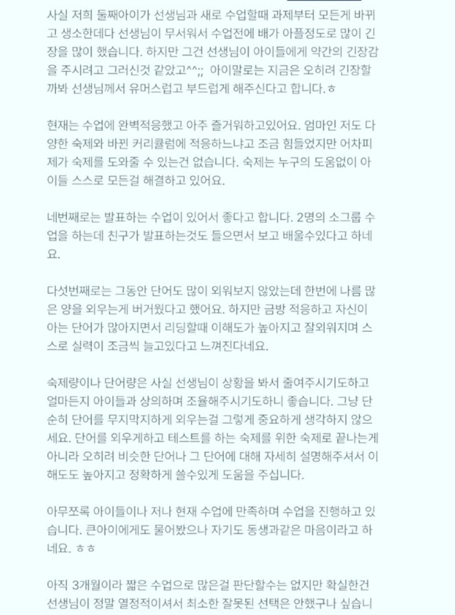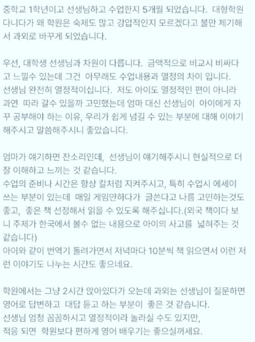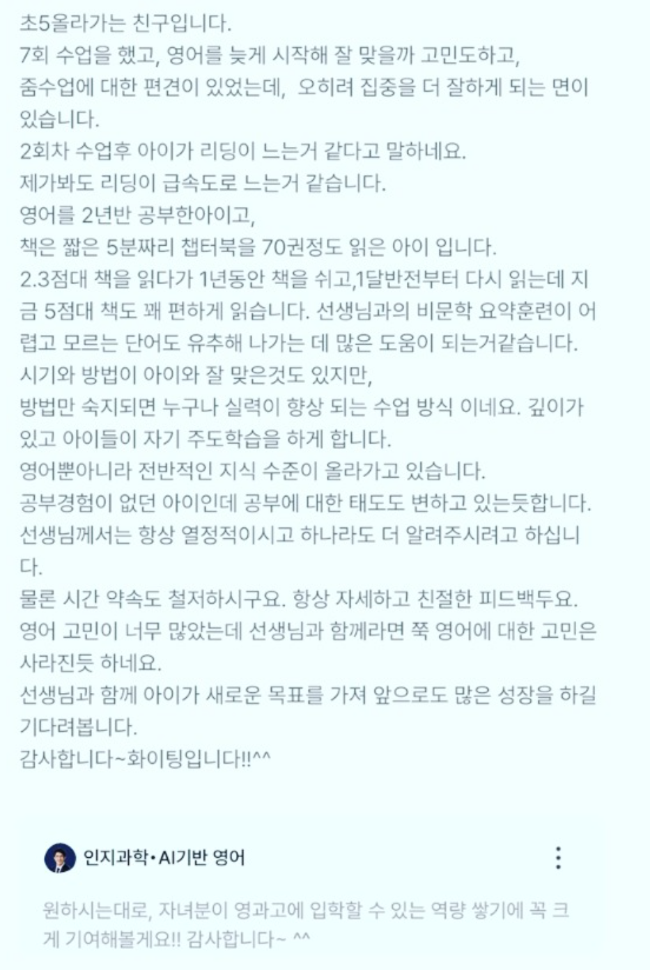 어학원 출신 예비 중학생 통합형 수업후기 - 2:1 그룹수업 성공 사례 케이스