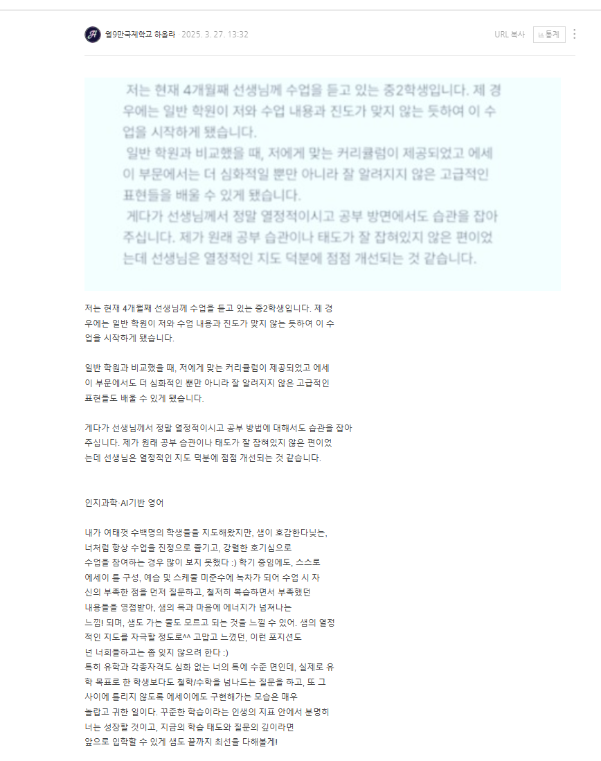 하올라 특목고 (민사고) 준비생 수업후기 - 2:1 그룹수업 성공 케이스 사례