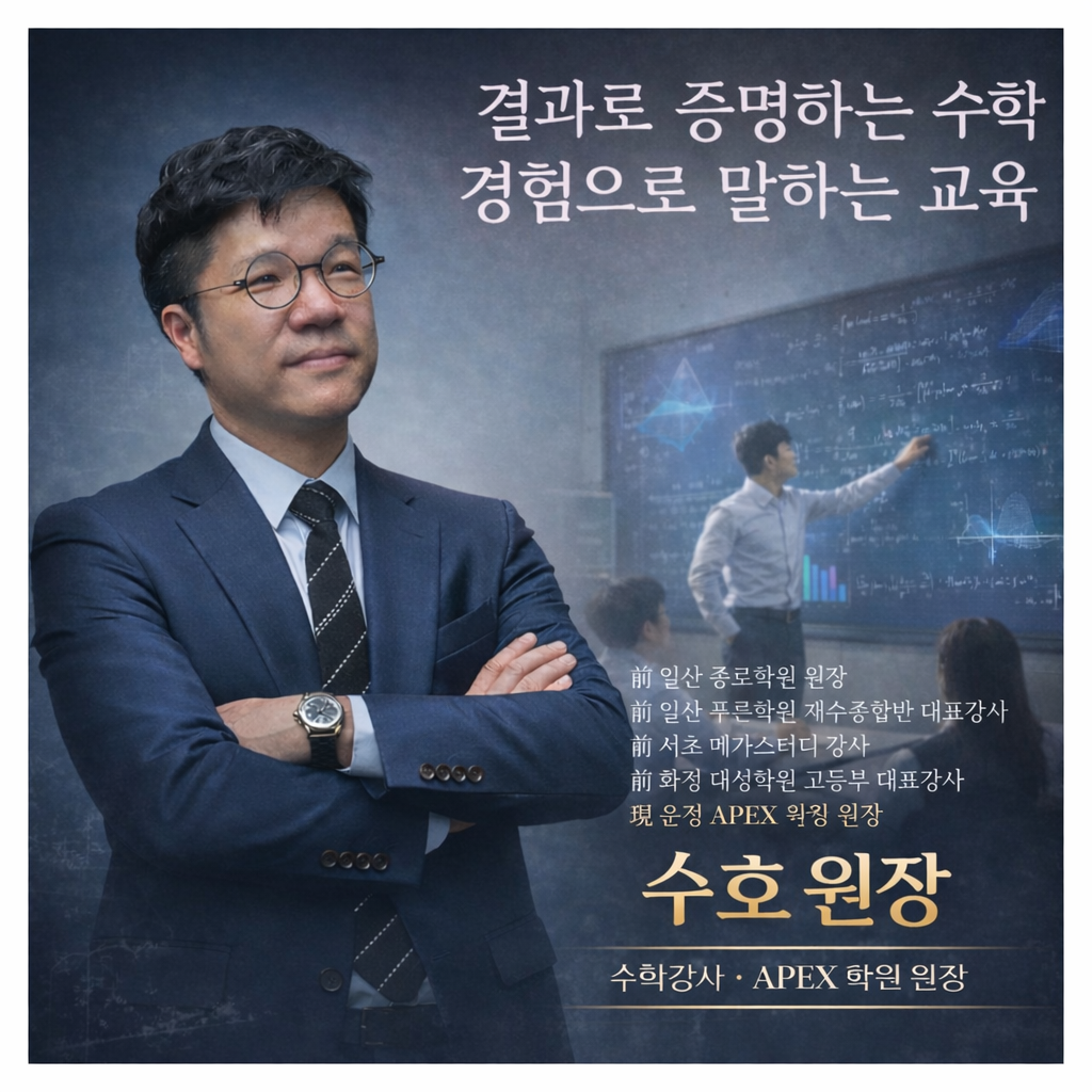 안녕하세요. 운정 APEX 학원입니다. 운정 APEX 학원은 학원가에서 30년 이상 학생들을 지도해 온 원장이 직접 개원하고 운영하는 학원입니다. 그동안 수많은 학생과 학부모님을 만나며 학생 한 명, 한 명을 제대로 이해하는 것이 교육의 시작이라는 믿음으로 지도해 왔습니다. 저희는 말로만 최고의 학원이라 자부하지 않겠습니다. 학부모님과 학생 여러분의 선택이 옳았다는 사실을, 교육의 결과로 증명하겠습니다. 교육 상담 및 문의는 아래 번호로 연락 주시기 바랍니다. >>교육 상담 문의 : 031-958-1500 감사합니다.