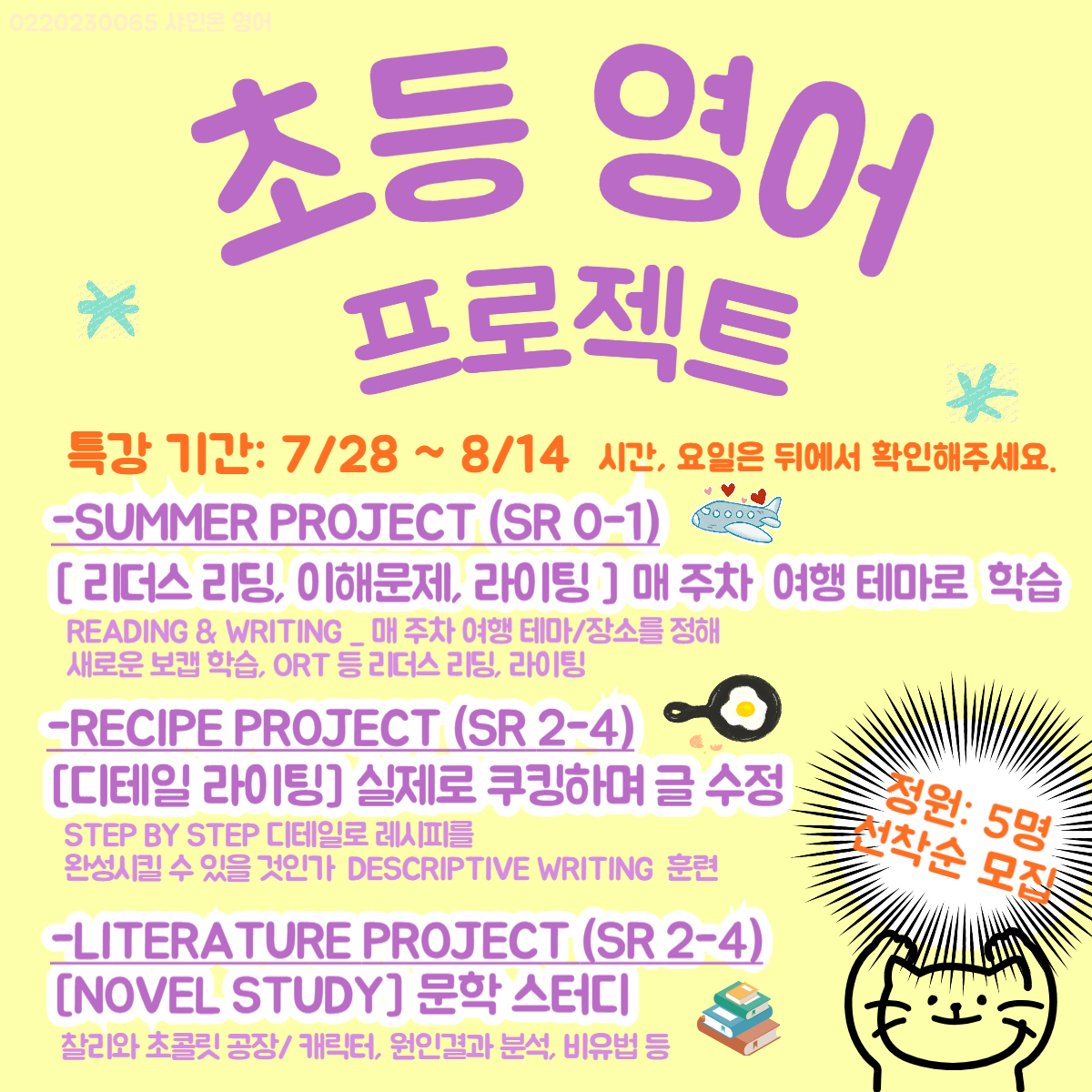 서대문 영어 초등연계 및 파닉스/리딩 *사립초학생 다수 재학, 상위반 유지 중 (경기초, 리라초, 상명부초, 이대부초, 등) *SR 1~3점 이상 상승 *파닉스반 매번 마감 *모든반 5명 소수정예 *100% 영어수업 * 영유,초등연계 경력 9년 이중언어 선생님