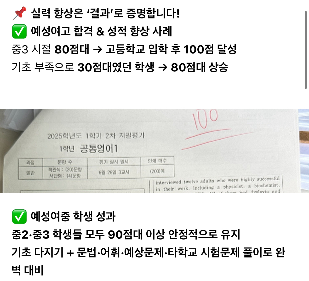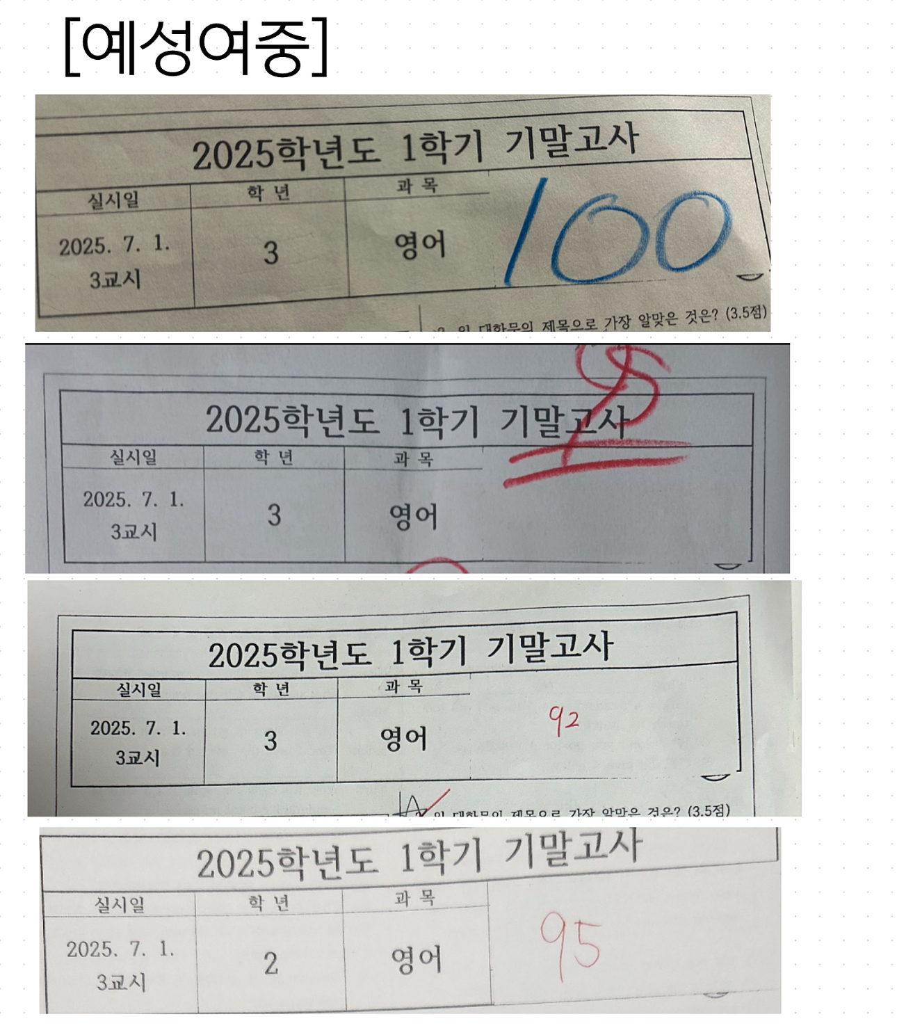 2025 1학기 중간 예성여고 100점
