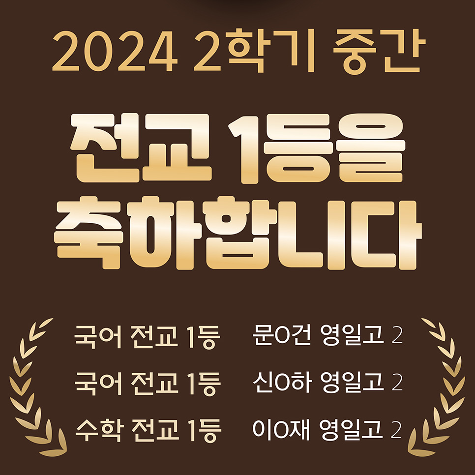 국어 전교 1등 문OO 국어 전교 1등 신OO 수학 전교 1등 이OO