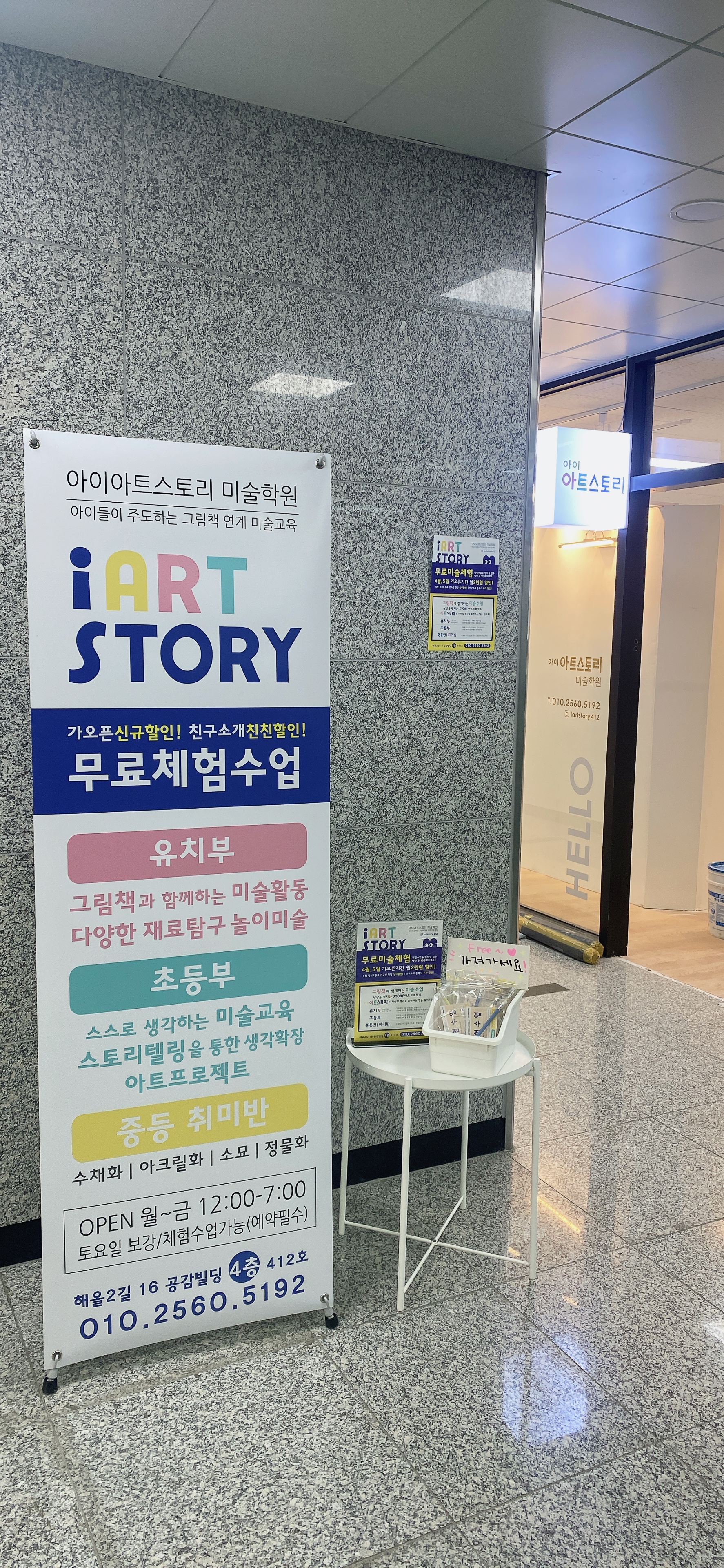 생각을 키우는 미술교육! 상상력을 더하는 창의미술! 유아: 5세-7세, 그림책 연계 아동미술 초등: 그림책 및 예술작가 등 다양한 주제융합 사고력확장 프로젝트미술 중등: 드로잉수업, 회화수업, 캔버스작품, 정밀묘사 월-금 12시-7시 / 토 10시-4시 주차2시간제공 <무료 체험수업 가능> -정규 커리큘럼 수업을 무료로 체험수업 해보세요! 원하시는 요일과 수업시간에 수업 진행 방식을 직접 느껴보시고 우리 아이그림 상담도 받아보실 수 있어요^^ *수업 문의 010.2560.5192 *수업 중에는 통화가 어려울 수 있습니다. *문자 / 네이버 톡톡 남겨주시면 연락 드리겠습니다. ^^