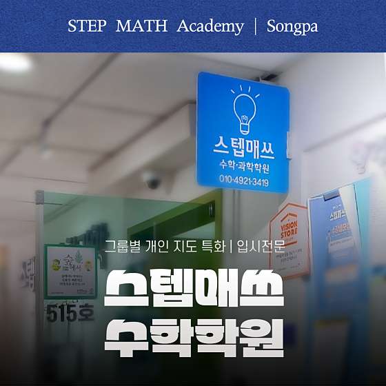 '스텝매쓰수학학원 송파 본원'입니다. 송파 / 위례 학생들의 단기적인 목표 달성 뿐만 아니라 현 초등부, 중등부 아이들을 위한 전과목 내신 전문 관리형 학원으로 거시적 대입 전략, 분석안을 제공합니다. 진로지도 및 정기적인 레벨 테스트로 성취도 점검 및 멘탈까지 관리하는 진짜 전문 학원! '스텝매쓰수학학원 송파 본원'에 대해 더 알고 싶으시다면, 예약 상담 혹은 블로그 방문을 추천합니다.