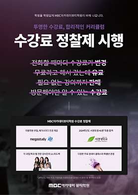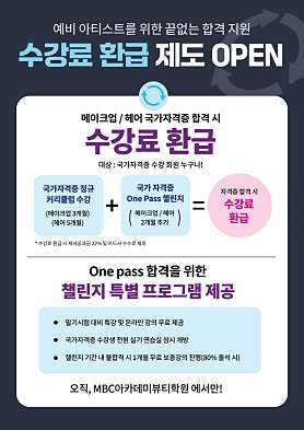 미래에 AI가 대체할 수 없는 업종 1위! [본사 직영 정찰제 운영 기관] 저희는 할인율 가지고 장난하지 않습니다^^ 모두가 똑같은 조건에서 적정한 수강료 책정으로 같은 혜택으로 진심과 최선을 다하는 교육기관입니다. [개인 목표에 맞는 1:1 맞춤 회원 관리시스템 도입] 전문적인 시스템과 엄격한 1:1 맞춤 수강관리로, 각 개인별 진학과 자격증 취득 및 취업 활동, 그리고 입학과 동시에 입시, 진학, 진로에 이르기까지 체계적인 관리시스템을 갖추고 있습니다. [메가스터디 내신 챙기기, 인강 독점 제공!] 고등 인강1위 메가스터디 메가패스 독점 제공, 1. 학년 제한없이, 고1~3학년 전강좌 무제한 수강 2. 과목제한 없이, 수능x내신 모두 무제한 수강 3. 선생님 제한 없이, 현재 1타 선생님 강의 무제한 수강 [수도권 전문 대학 입시 컨설턴트 정규직 운영] 다양한 미용 대학 입시 상담 경험이 있는 미용전공 담임선생님들이 학생의 멘토링을 직접 담당하며 진로에 필요한 자격증 취득 및 전국미용경진대회 등 최종적 미용 대학 목표 도달까지 다양한 프로필을 쌓을 수 있도록 돕고 입학과 동시에 진학학생의 특별관리가 이루어집니다. [정규직 직원 강사 시스템] 저희는 정규직 직원들로 이루어진 강사진으로 시간강사 또는 계약직 직원분들이 학생 관리를 진행하지 않습니다. 정규직 직원 강사님들이 더욱 책임감을 가지고, 빠르게 목표에 도달하도록 항상 옆에서 챙겨드리고 있습니다. [출결 시스템 도입] - 안전한 등원 등록된 부모님 번호로 학원생이 출석하면 자동 문자 발송되고 수업 종료 후에도 학원 출발 문자 자동 발송됩니다, - 교육과정 - 메이크업 - 미용사(메이크업)국가기술자격증, 메이크업테크닉, 메이크업스페셜 네일 - 미용사(네일)국가기술자격증, 네일테크닉, 네일스페셜 에스테틱 - 미용사(피부)국가기술자격증, 피부테크닉, 현장실무, 왁싱 헤어 - 미용사(헤어)국가기술자격증, 업스타일베이직, 헤어테크닉 특강 - 속눈썹, 현장실무, 메이크업아티스트, 웨딩 등 MBC아카데미뷰티 미용학원 동대문지점에서 당신의 꿈을 이루어드립니다!