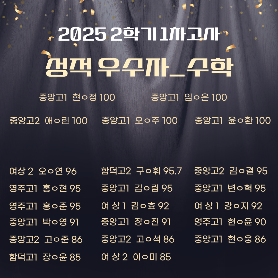 2025 2학기 중간고사 성과 영어. 수학 성적 우수자